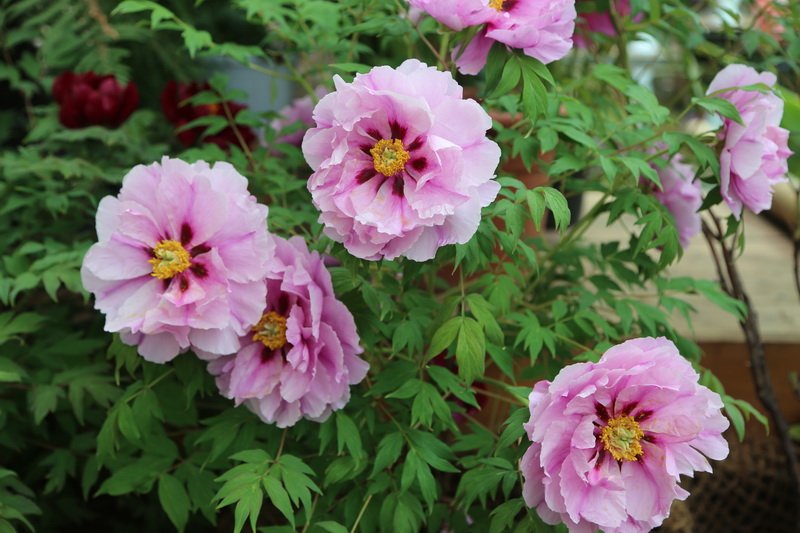 Саженцы пиона древовидного Сапфир (Paeonia Suffruticosa) считаются саженцами поистине настоящего украшения любого цветника. Сорт отличается морозостойкостью, способен выдерживать похолодания до минус 25 градусов. Куст высокий, вырастает почти до 1,5 метров. Листва декоративная, темно-зеленого оттенка. Пион предпочитает солнечные участки или легкую полутень. Цветки полумахровые, лепестки розового оттенка с бордовой каймой в центре соцветия. Диаметр – от 16 до 18 сантиметров. Тычинки ярко-желтые, сердцевина крупная. Цветение обильное, весь куст усыпан соцветиями. Зацветает пион в мае. Цветение продолжается около двух недель.