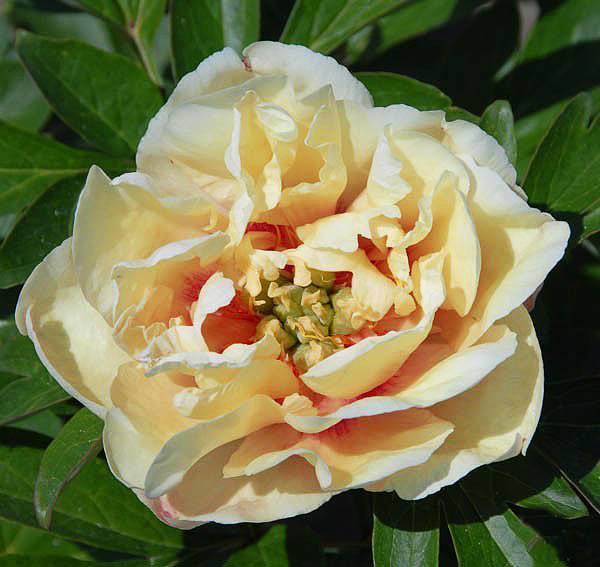 Рассада пиона ИТО Кенари Бриллиантс (Canary Brilliants), не доставит хлопот садоводу и превратится в декоративные кусты с очаровательными кудрявыми цветами. Взрослое растение – раскидистый, но компактный куст, не выше 1 м. Окраска цветов переливается оттенками от лососевого до персикового. Листва посеченная, темно-зеленая. Прочные побеги хорошо удерживают пышные соцветия. Основание ствола покрывается древесной корой. Особенности посадки пиона Кенари Бриллиантс: