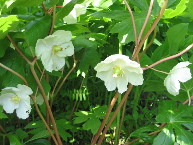 Рассаду подофиллума щитовидного высаживают на влажные удобренные почвы. Места выбирают полузатененные или теневые. Стебли растения достигают 50-70 см в высоту. Цветки белые, диаметром 3—5 см. Период цветения - июнь. Цветение продолжается около трех недель. Рассада подофиллума щитовидного используется не только для озеленения участка, но и в лечебных целях (применяются плоды многолетника). Молодые листья рассады подофиллума щитовидного могут повреждаться поздневесенними заморозками.
