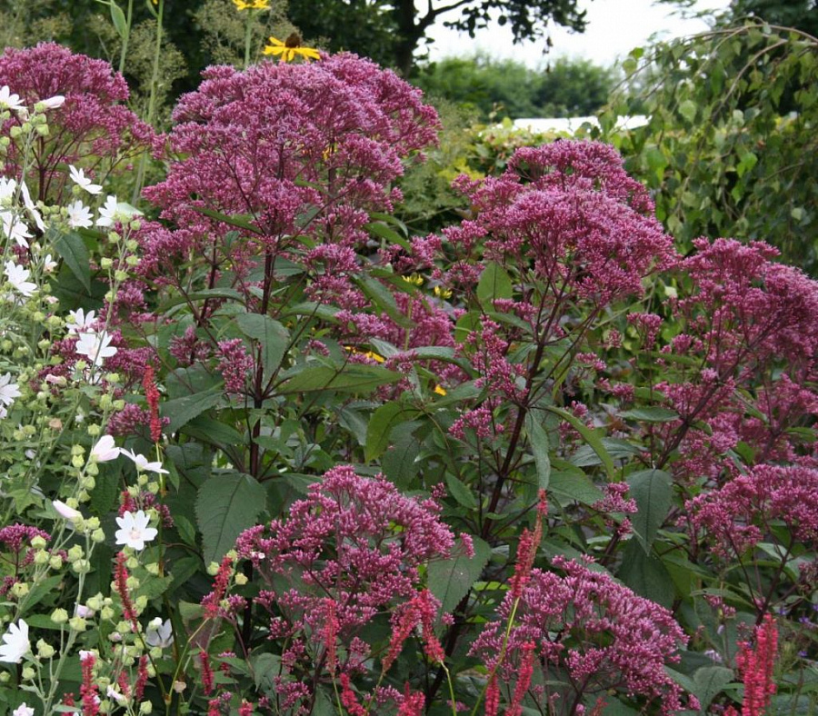 Посконник пятнистый ризенширм - это удивительное растение с ярко-пурпурными цветками, которое поразит вас своей красотой и изяществом. Его ствол прочный и прямой, а размеры растения достигают внушительных размеров, что делает его идеальным для создания живописных композиций в вашем саду. Листья посконника имеют необычную форму и текстуру, что придает растению особый шарм.