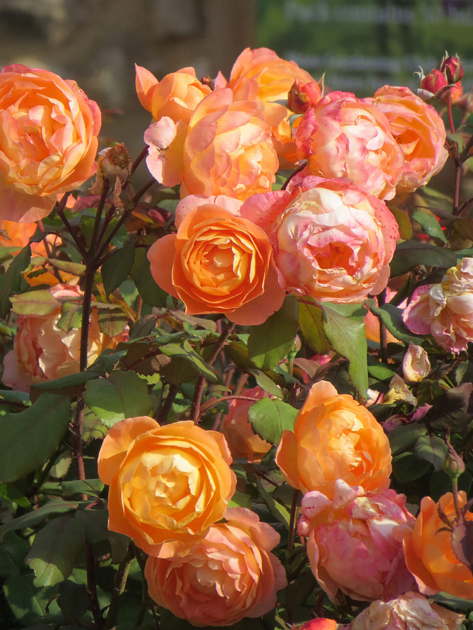 Роза 'Леди Эмма Гамильтон' (Lady Emma Hamilton), созданная знаменитым селекционером Дэвидом Остином в 2005 году, выделяется своими уникальными оттенками, объединяющими оранжевые, жёлтые и розовые тона. На начальном этапе цветения бутон демонстрирует насыщенный оранжевый цвет с золотыми и розовыми акцентами. Постепенно раскрываясь, цветок приобретает более светлые, персиково-розовые оттенки. Крупные бутоны, имеющие чашевидную форму и плотно уложенные лепестки, достигают в диаметре примерно 10–12 см. Роза обладает сильным и стойким ароматом, включающим фруктовые, пряные и чайные ноты, что делает её особенно привлекательной для поклонников ароматных растений.
