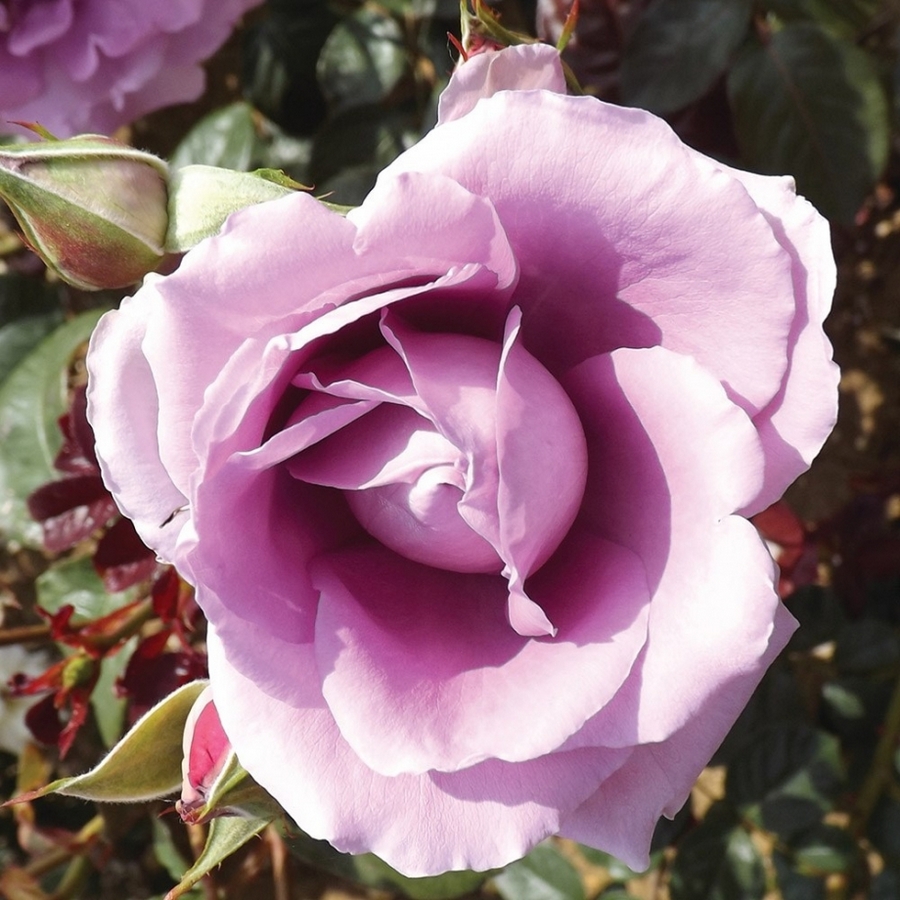 Роза чайно-гибридная Генри Идланд - это великолепное растение с изысканными фиолетовыми цветками, которые радуют глаз своей красотой в течение нескольких месяцев весной и летом. Это растение отличается высокой морозостойкостью (зона 2) и может достигать впечатляющей высоты до 80 см. Листья розы зеленого цвета летом, а осенью приобретают желтый оттенок, создавая удивительный контраст.
