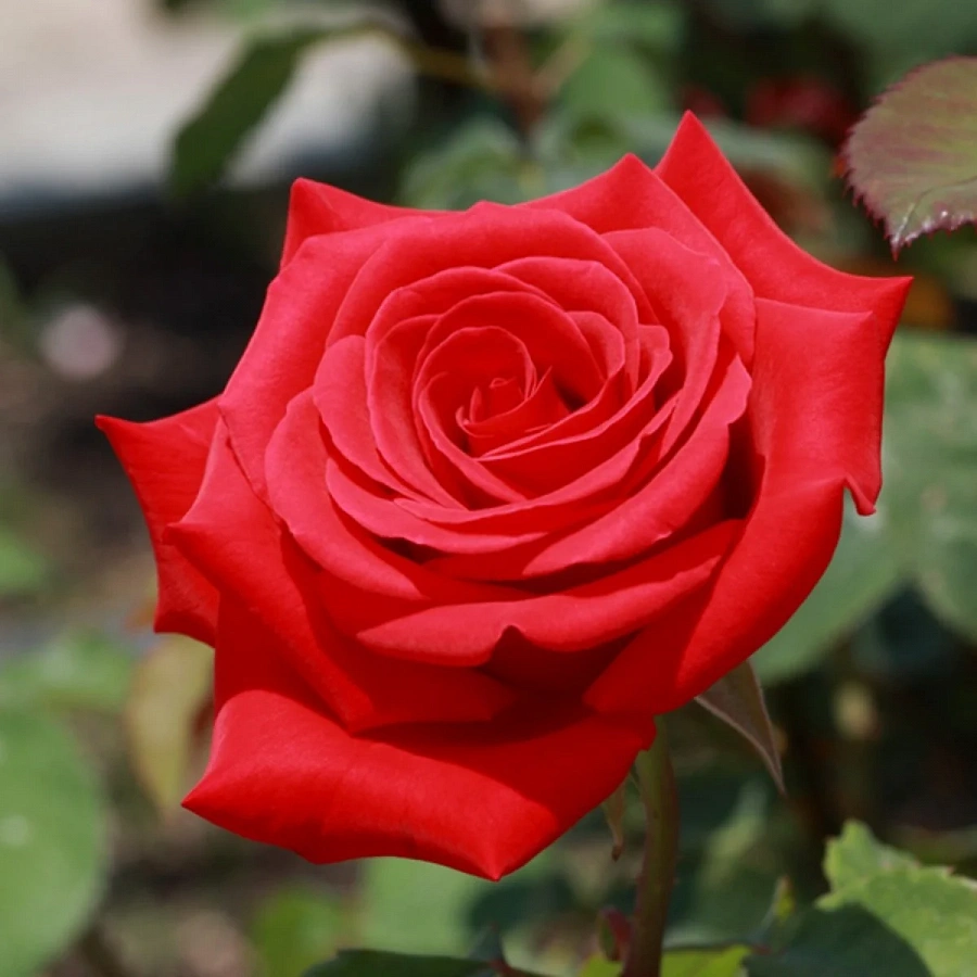 Роза чайно-гибридная Лидка - это великолепное растение с темно-зелеными листьями и красивыми красными цветками. Ее ствол прочный, а размеры достигают высоты до 140 см и диаметра до 70 см. Листья имеют интересную форму, что делает эту розу еще более привлекательной.