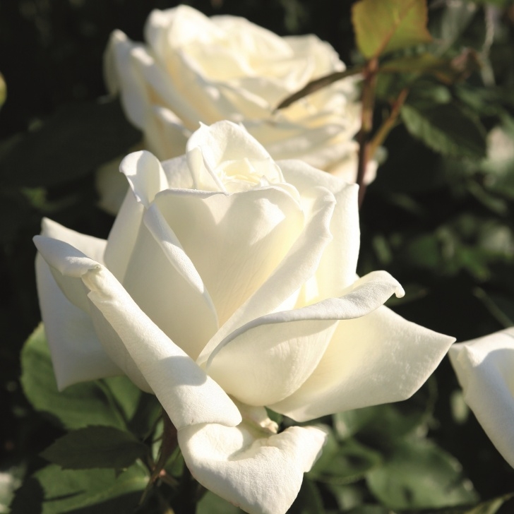 Роза чайно-гибридная Полаштерн - это изысканное растение с белыми цветками, которые напоминают сверкающие звезды на ночном небе. Ее ствол прочный и изящный, а листья имеют элегантную форму, создавая великолепный контраст с нежными цветами. Роза Полаштерн предпочитает обогащенные почвы и яркий солнечный свет, поэтому выберите для нее место, где она будет получать достаточно света и тепла.