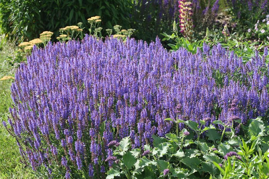 Для ухода за сальвией дубравной блаукенигин рекомендуется регулярный полив в период сухости, а также опрыскивание листьев для поддержания влажности. Растение нуждается в плодородных почвах и регулярном удобрении для активного роста и цветения. Сальвия может быть атакована вредителями, поэтому рекомендуется проводить профилактические меры.