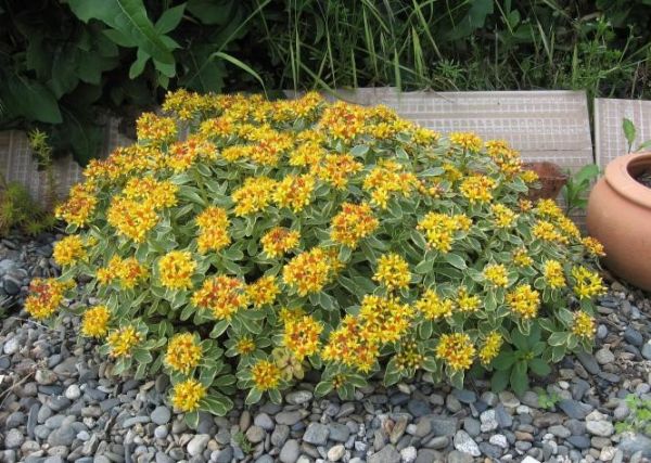 Седум камчатский вариегата - это удивительное растение с яркими желтыми цветками, которые радуют глаз в течение двух месяцев. Его листья имеют необычную форму и окраску, что делает его настоящим украшением сада. Этот сорт седума отличается высокой морозостойкостью и прекрасно растет на влагоемких почвах.