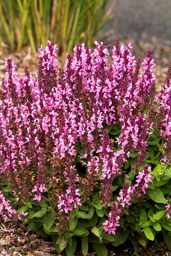 Шалфей дубравный "Нью Дайменшн Роуз" - это удивительное растение с розово-фиолетовыми цветками, которые расцветают в течение нескольких месяцев в году. Его ярко-зеленые листья имеют необычную форму, что делает его по-настоящему уникальным среди других растений. Высота этого шалфея может достигать 20-25 см, что делает его идеальным для групповых посадок в солнечных местах.