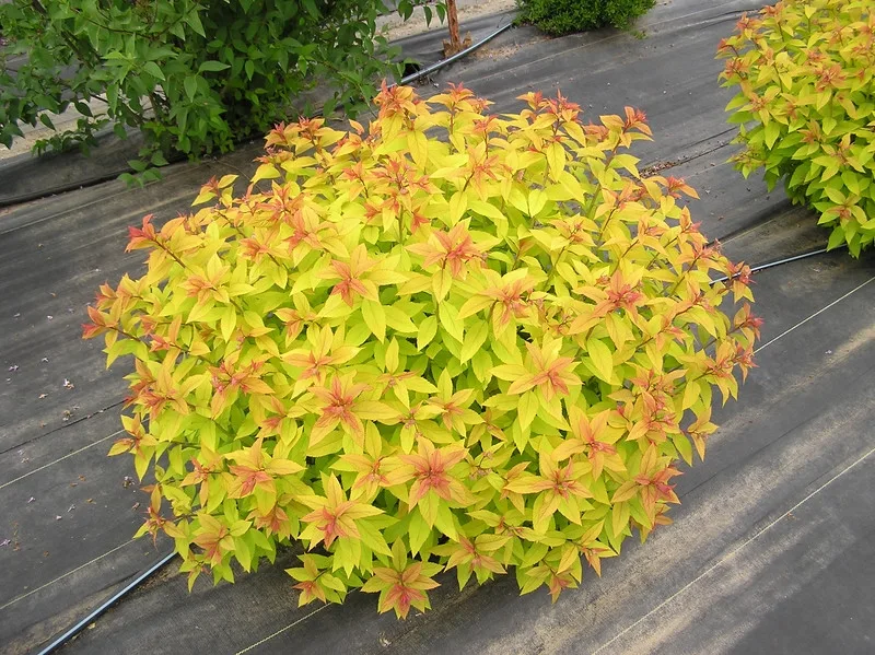 - годовой прирост – 10-15 см. Для размещения саженцев спиреи Голдфлейм следует выбрать солнечное место, укрытое от ветра. В тени необычный цвет листвы станет зеленым.