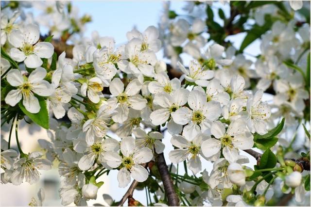 Саженцы вишни обыкновенной Морозовки спустя непродолжительное время вытягиваются до 2,5 метров. Крона кустарника широкая, имеет форму шара. Большие белоснежные цветы – прекрасный декор сада. Плоды поспевают уже в июле, отличаются высоким содержанием аскорбиновой и фолиевой кислот. Сладкие ягоды идеально подходят для приготовления десертов. Среди преимуществ крупномера: