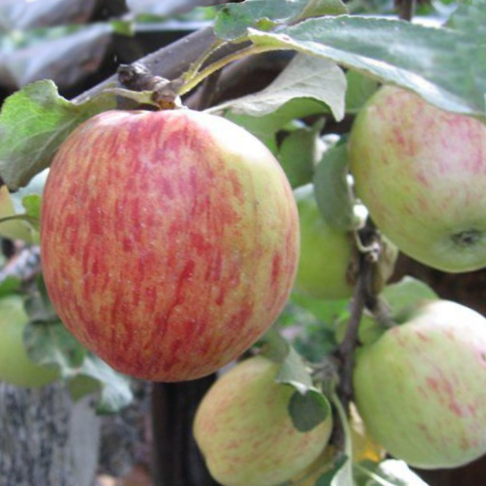 Саженцы яблони Осеннее Полосатое можно высаживать не только рядом с другими деревьями, но и одиночно, так как сорт является самоопыляемым. Урожайность довольно высокая, с одного дерева в благоприятные годы можно собрать до 150 кг яблок. Характеристика плодов:
